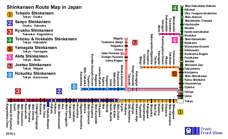 Japanese Shinkansen (Bullet Train) Route Map (All Stations)